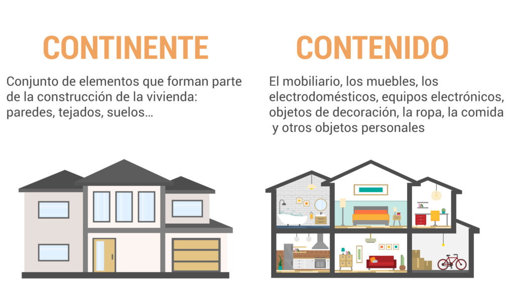 Tal y como indica la compañía de seguros Catalana Occidente, “Se entiende por continente el conjunto de elementos que forman parte de la construcción de la vivienda: paredes, tejados, suelos… y también las instalaciones fijas, como tuberías de agua y gas, cableado eléctrico y telefónico, calefacción y los sanitarios.